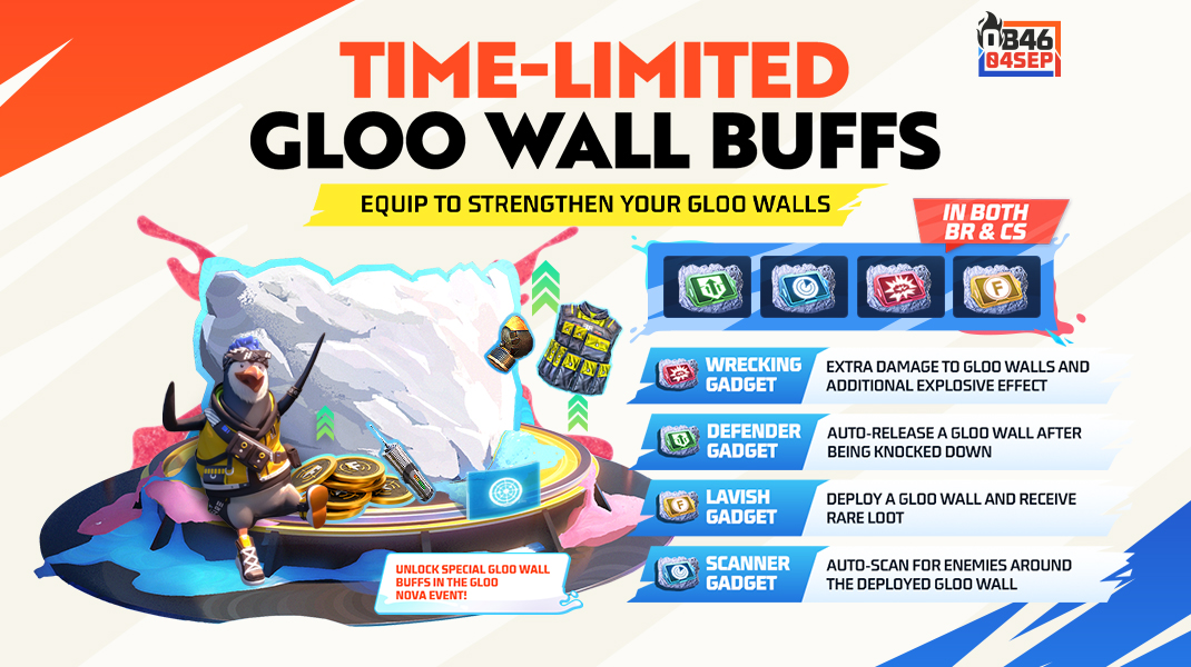 - During the event, players can select one of four Gloo Wall gadgets to use in-match. Each gadget offers a unique effect on the Gloo Wall during gameplay.